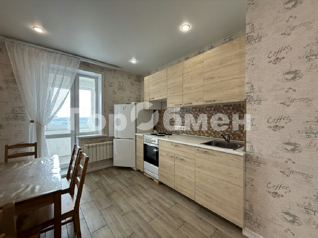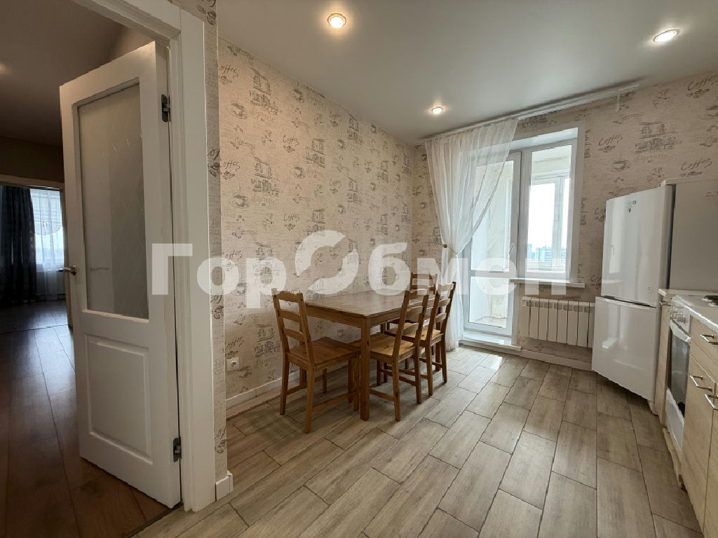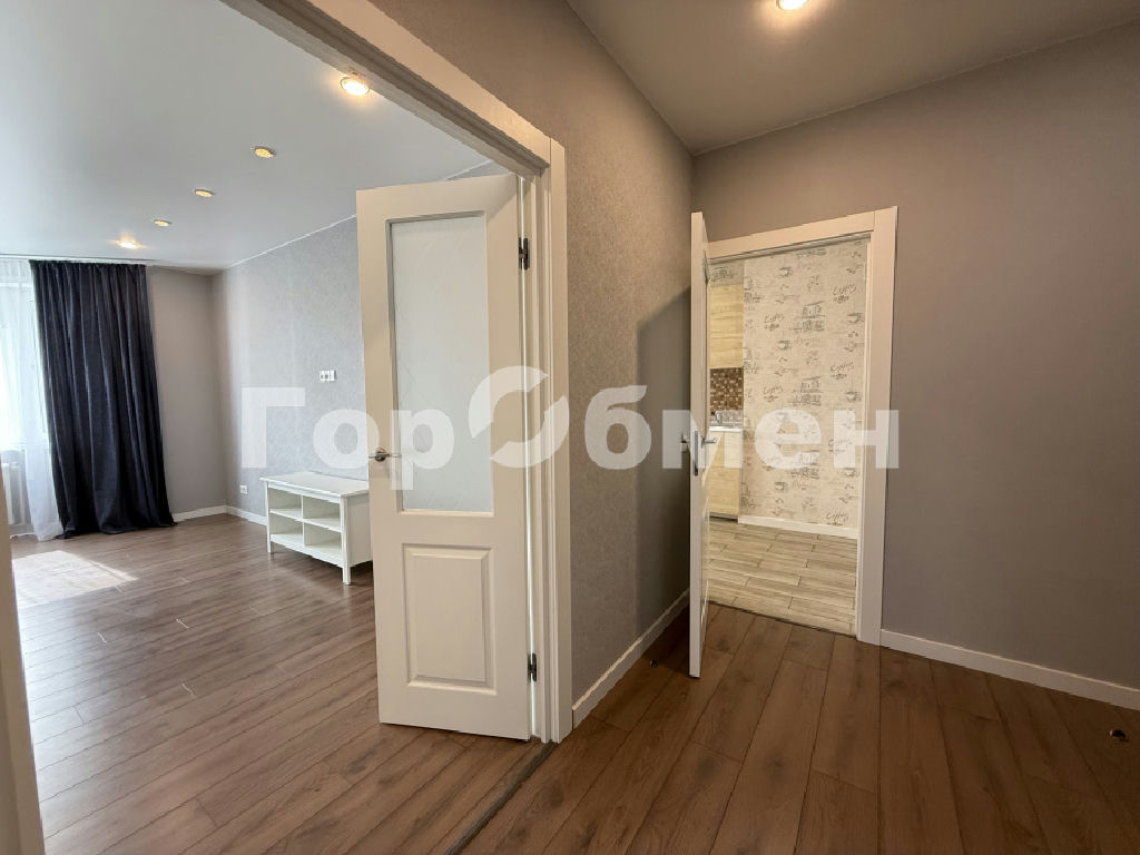 Пол качественный ламинат и плитка на кухне, двери дерево. Натяжные потолки. Лоджия (застекленная) на кухне, с/у совмещенный